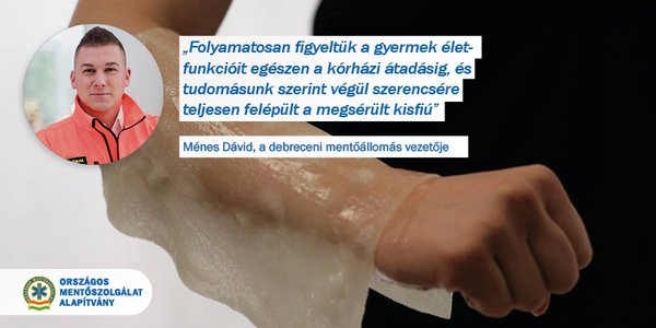 A mentésirányító tanácsára a rémült szülők elkezdték hideg csapvízzel hűteni a sérült részeket, ami csillapította a gyermek fájdalmát. A helyszínre érve pedig felraktuk a speciális égési kötszert, amely a fájdalmat tovább csökkentette."