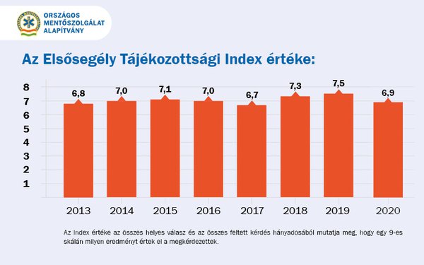 A bevezetőben előirányzott megosztó és új kérdések hatására az Elsősegély Tájékozottsági Index 2020-ban 6,9 pont lett.